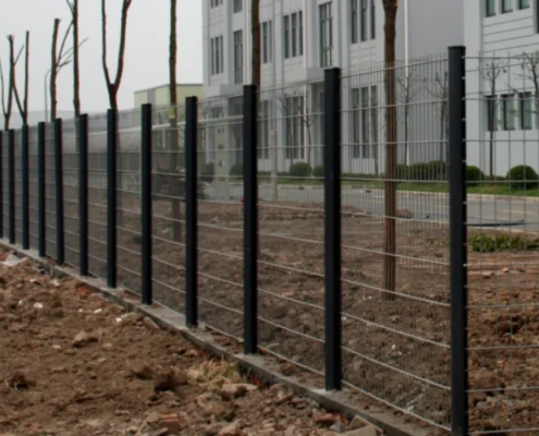 Constructed with a one-piece, seamless all-steel curved post and 2D double horizontal wire welded mesh, the 2DT Wire Mesh Fence features a sleek and elegant appearance with dynamic, smooth lines. The integrated design of the post buckle groove connects the mesh without requiring additional connectors, allowing it to adapt seamlessly to uneven terrain and installations at various angles. The fence employs a push-type installation method for added convenience and efficiency.